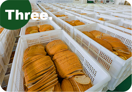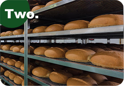 2回の発酵を経て、1時間をかけてじっくりと焼き上げます。小麦の香りが豊かな美味しいパンが完成します。