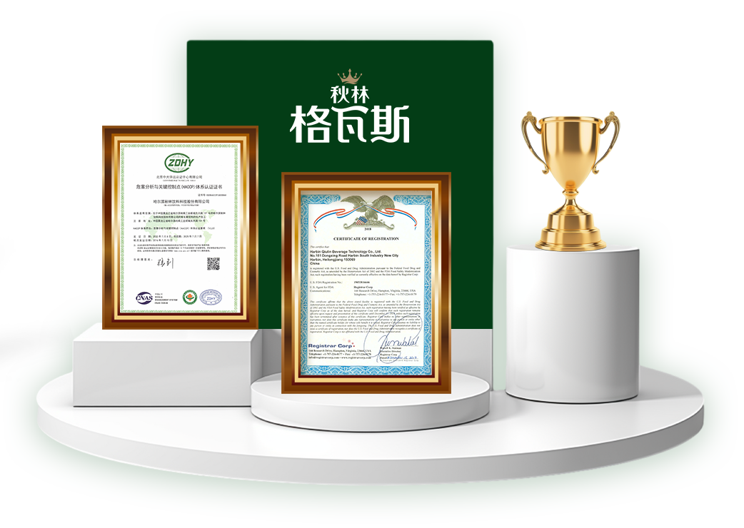 秋林クワスは、バイオテクノロジー発酵技術を採用し、先進的な発酵設備と専門的な研究開発チームを有しています。現在、48件のデザイン発明特許と10件の製品発明特許を取得しています。その中で、秋林クワスを高濃度希釈で製造する技術は、低エネルギー消費、高収率、安定したプロセスといった顕著な特徴を持っています。